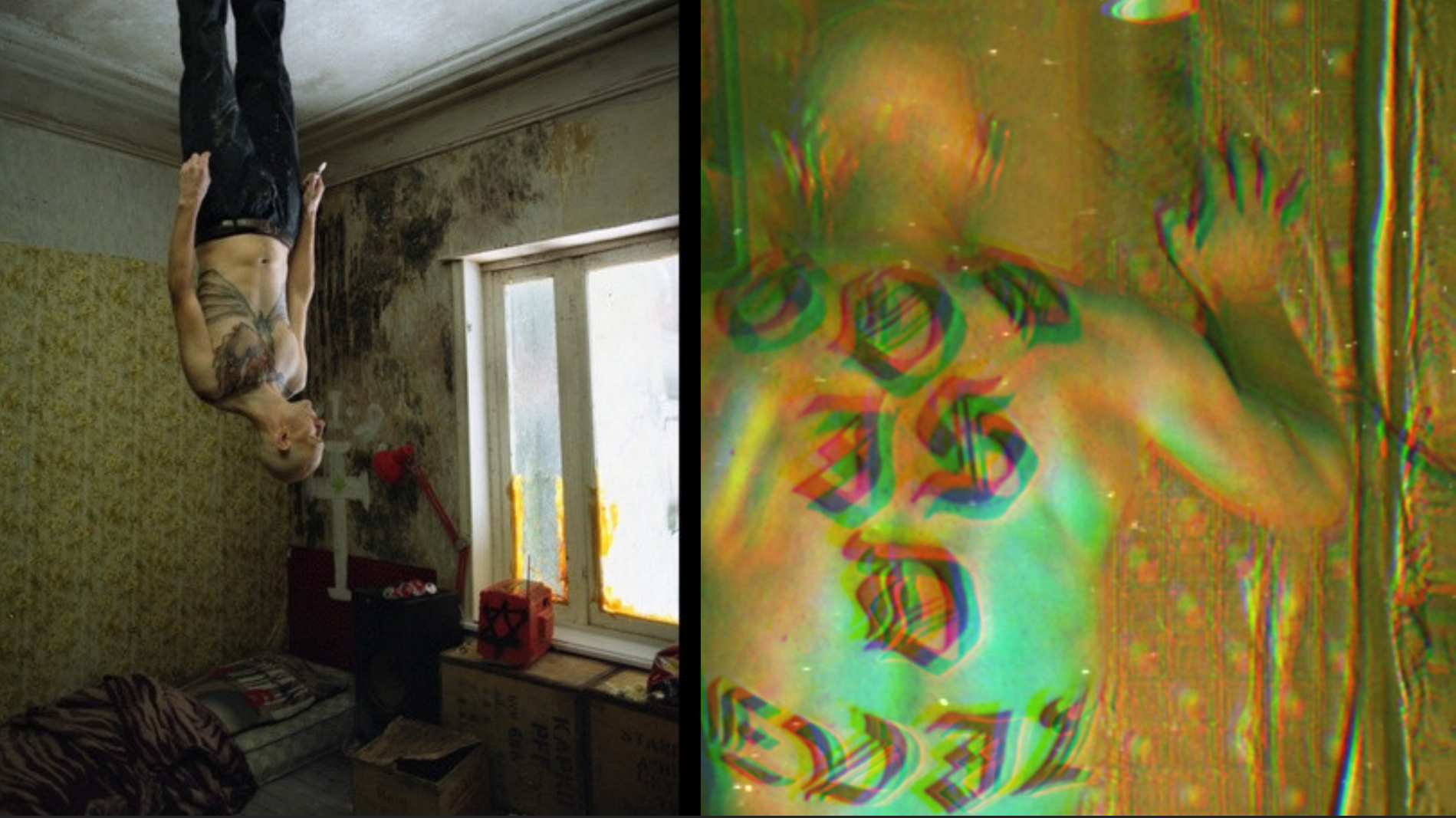 Viewers today are dickwads, diminished by doomscrolling, porn, and other such embarrassing rottenness. But even the degenerated – a preponderant segment of the MEON readership – will notice the break with literalism in the film. The Barabas of the flick, the rapist-cum-homicidal skinhead, appears upside down, feet planted on the roof, like a vampire bat – fitting given that his domicile in shrouded in the meridian graffiti of his victims. The semiotic of inversion suggested is complemented by the repetition of the question: “Where were you when King Boudewijn died?”. Putting aside the merits of this particular Monarch, the Ostend – the Occident, in general – of ‘Ex Drummer’ is in an indubitably state of crisis due to the absence of a centre.
